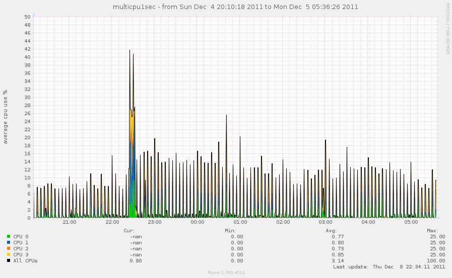 Adding multicpu1sec from http://plugins.munin-monitoring.org/ as it serves as an example for 1 sec granularity.